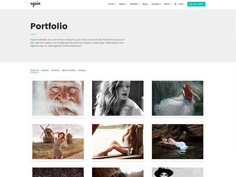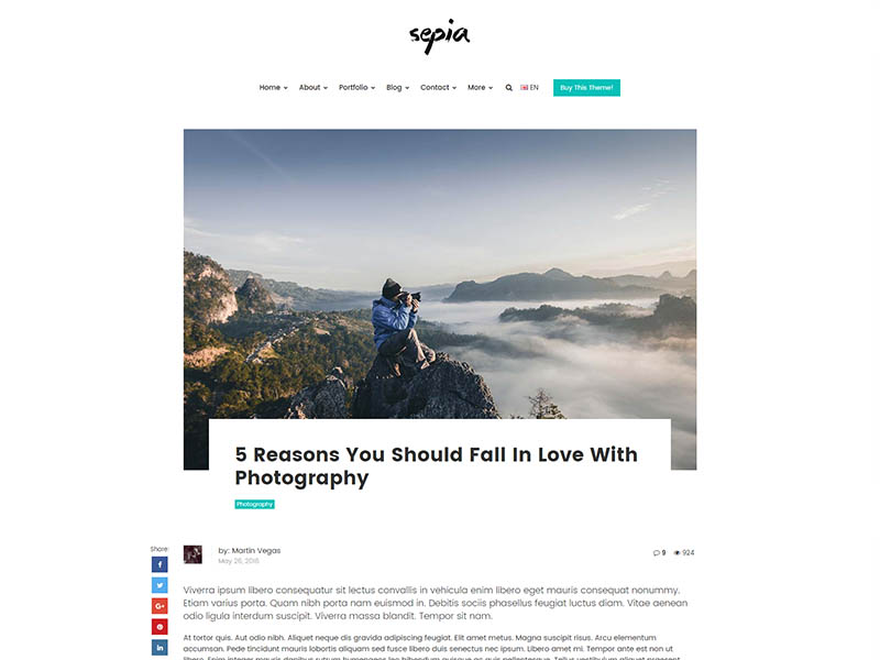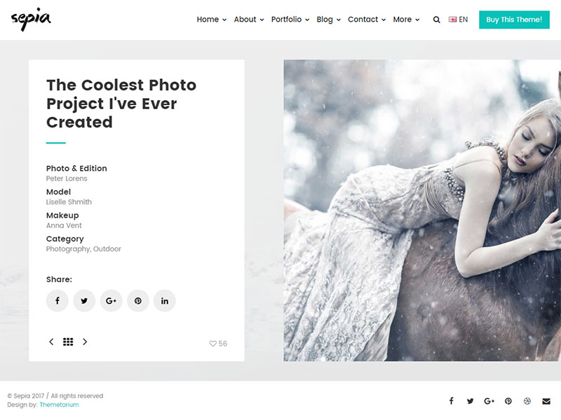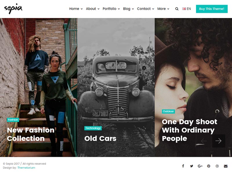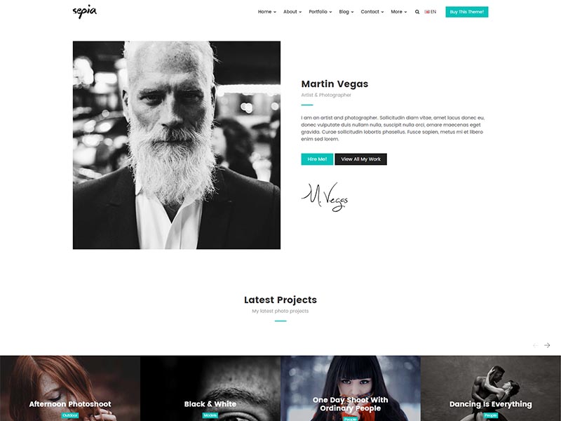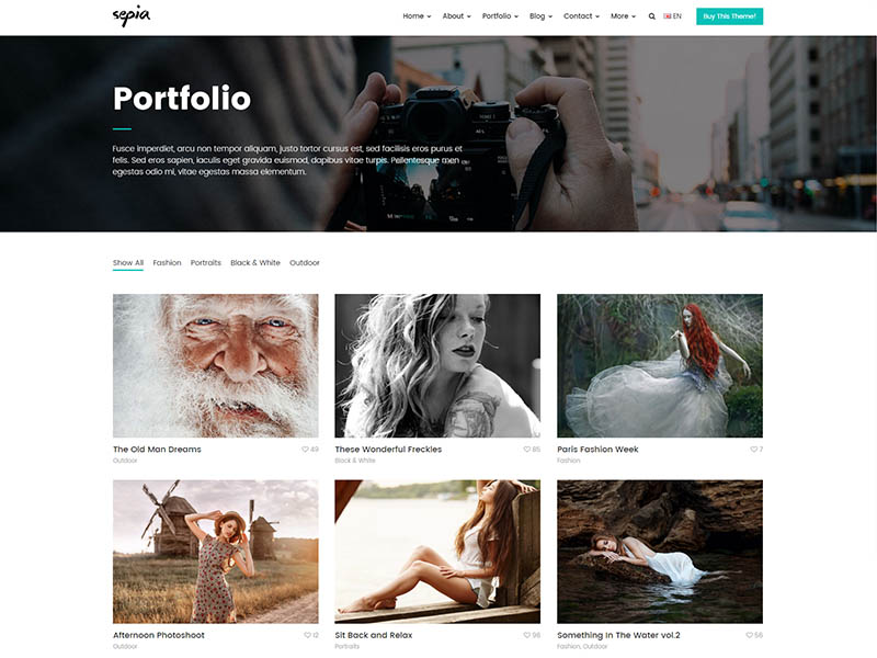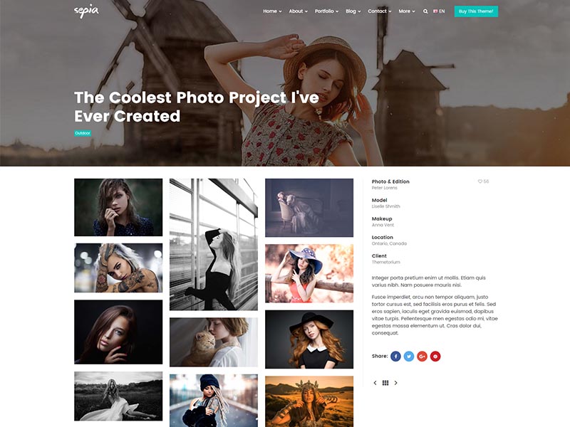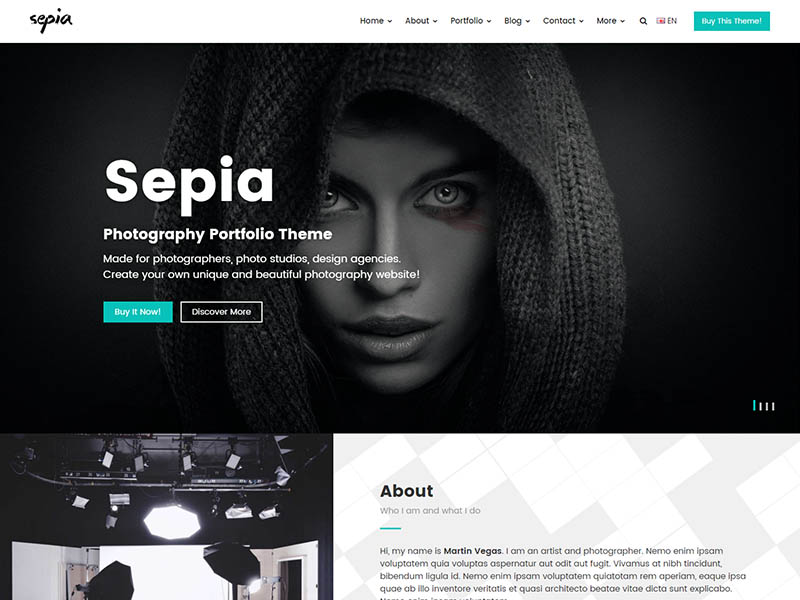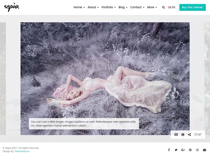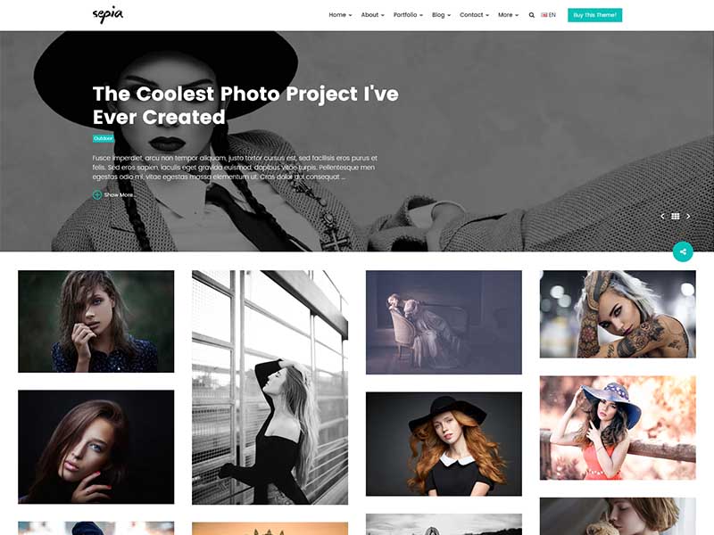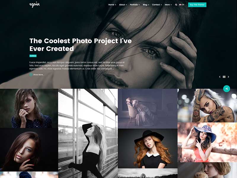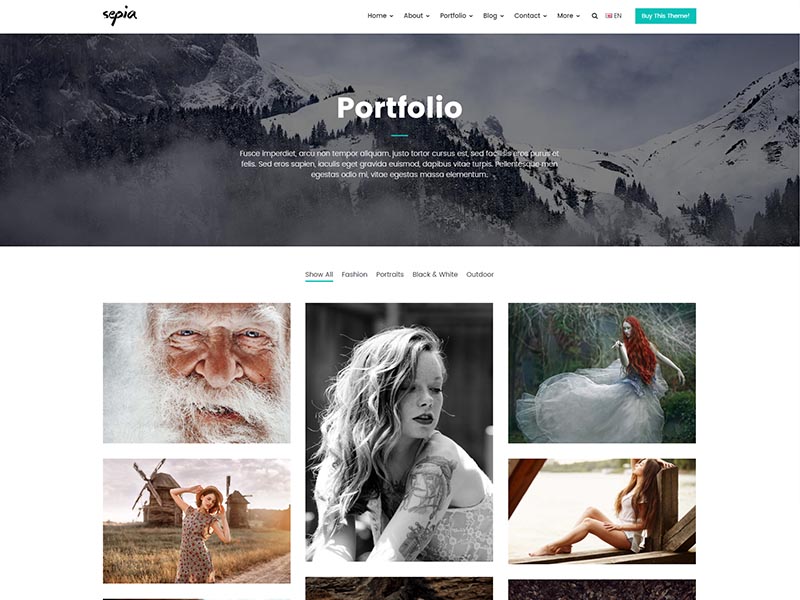 Sepia – is a complete HTML5 and CSS3 website theme based on popular Bootstrap Framework. It fits perfectly for photographers, photo studios and design agencies. It looks great with all types of devices (laptops, tablets and mobiles).