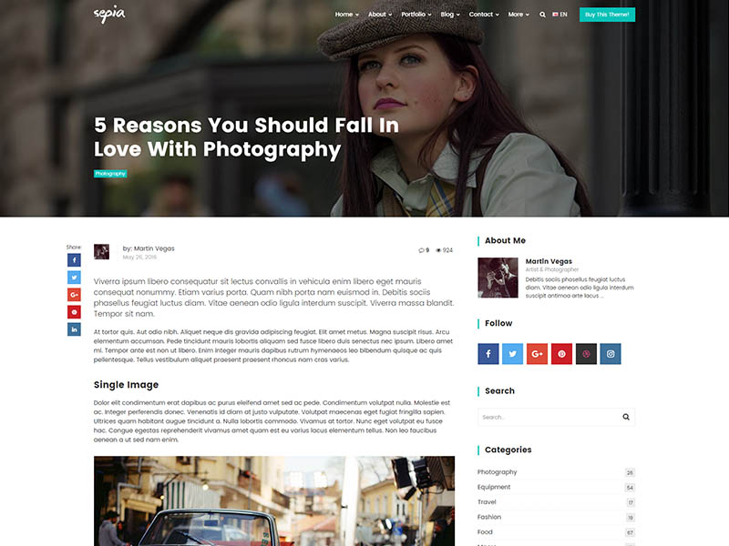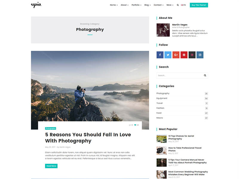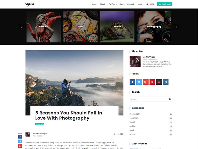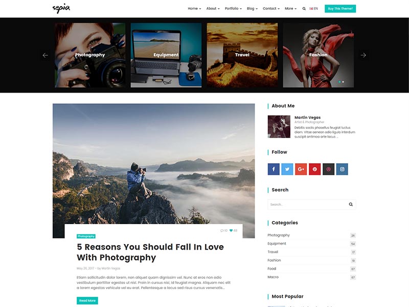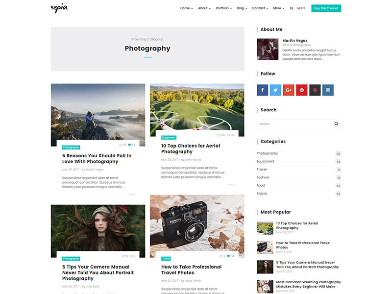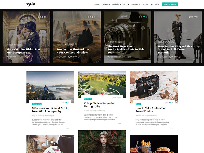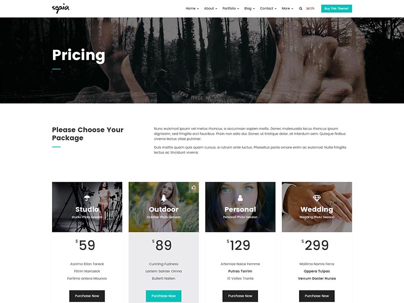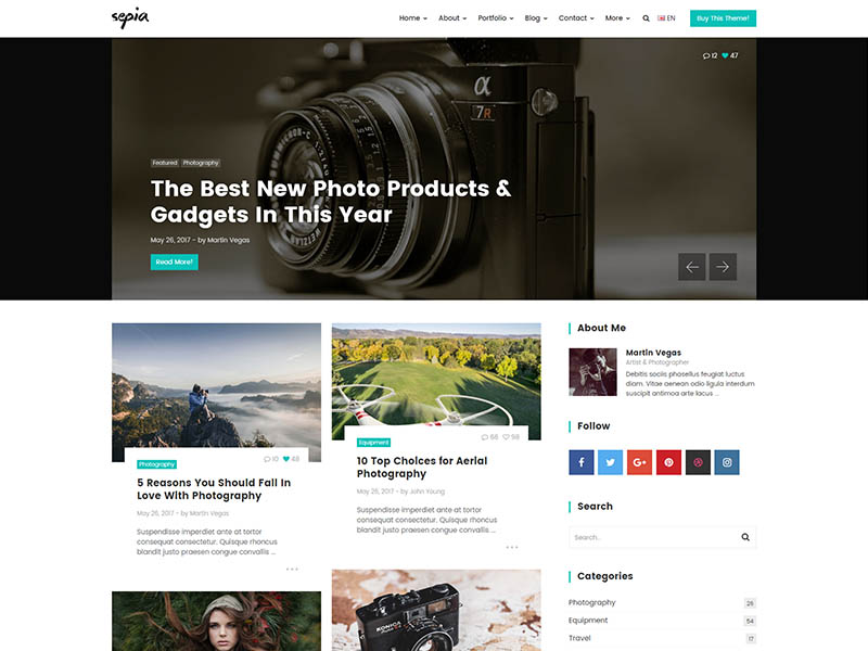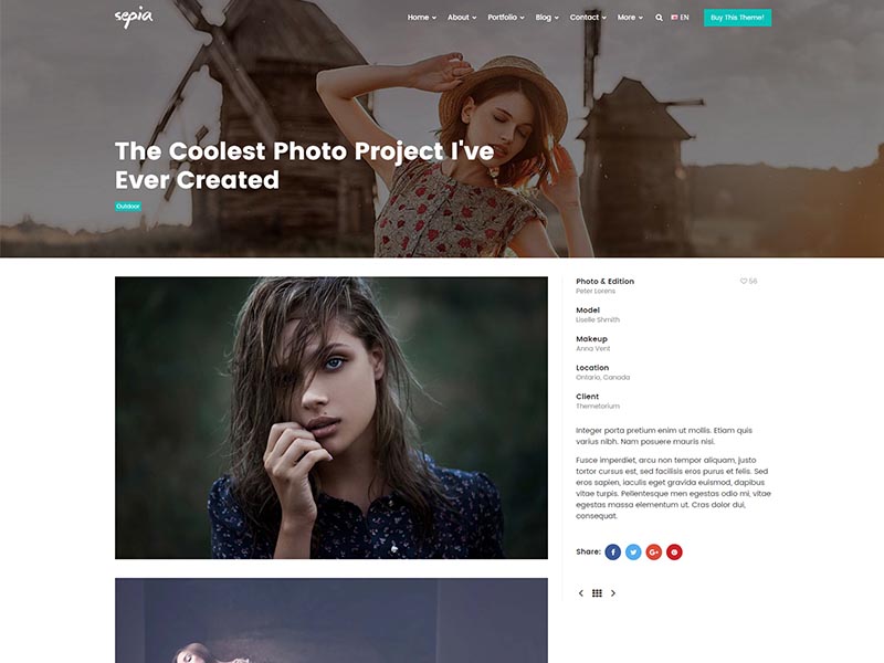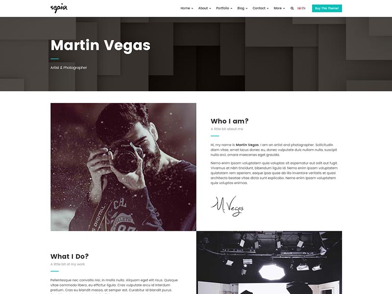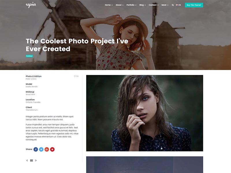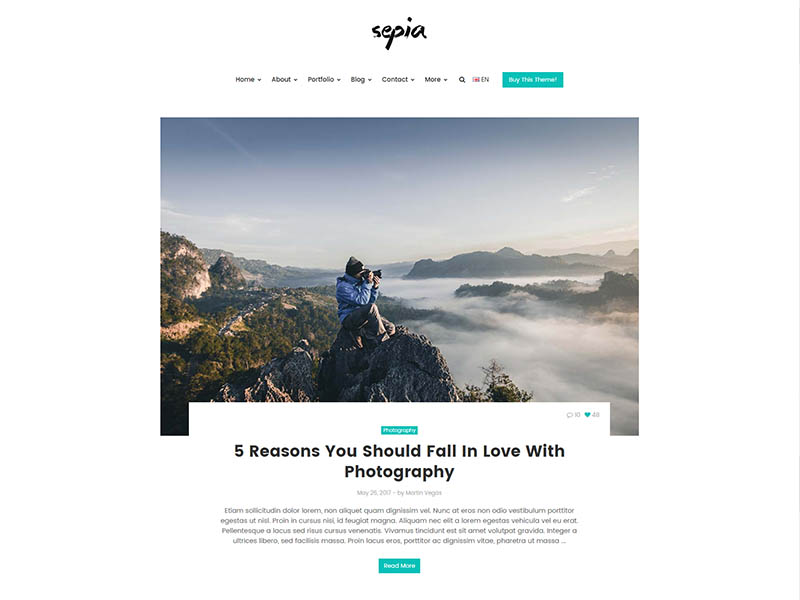 Sepia – is a complete HTML5 and CSS3 website theme based on popular Bootstrap Framework. It fits perfectly for photographers, photo studios and design agencies. It looks great with all types of devices (laptops, tablets and mobiles).